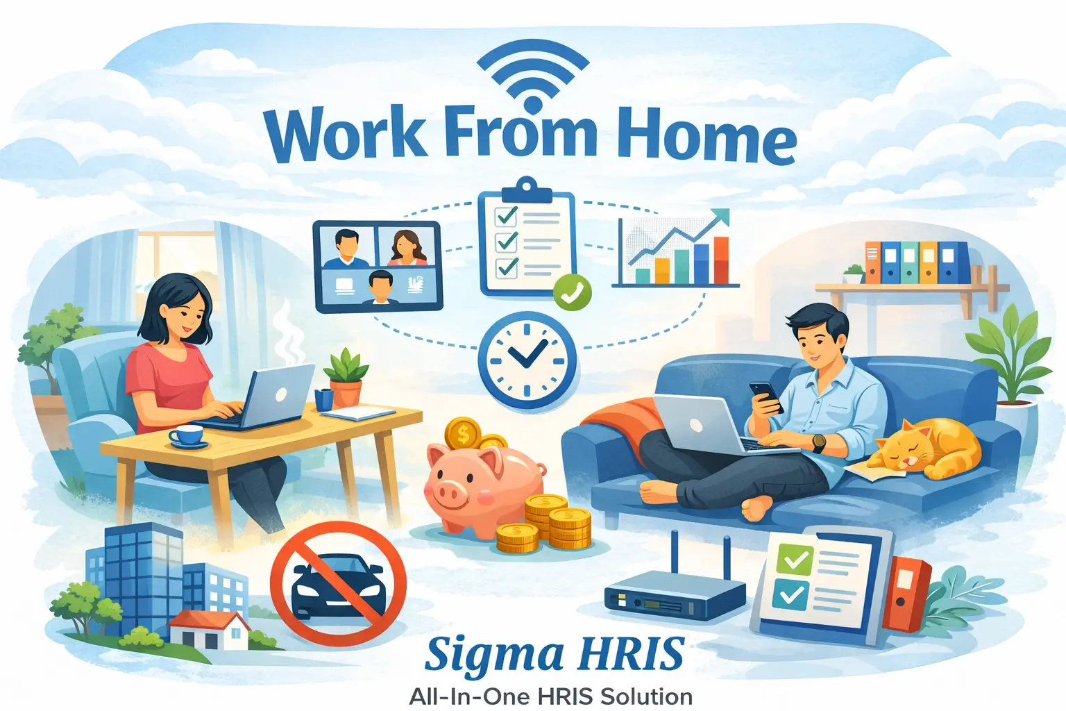 WFH dalam pekerjaan adalah sistem kerja Work From Home, yaitu bekerja dari rumah berdasarkan kebijakan dan ketentuan perusahaan. Sistem ini dapat memberikan manfaat bagi perusahaan maupun karyawan, terutama dalam hal efisiensi ruang kerja, pengurangan kebutuhan parkir, serta penghematan biaya transportasi